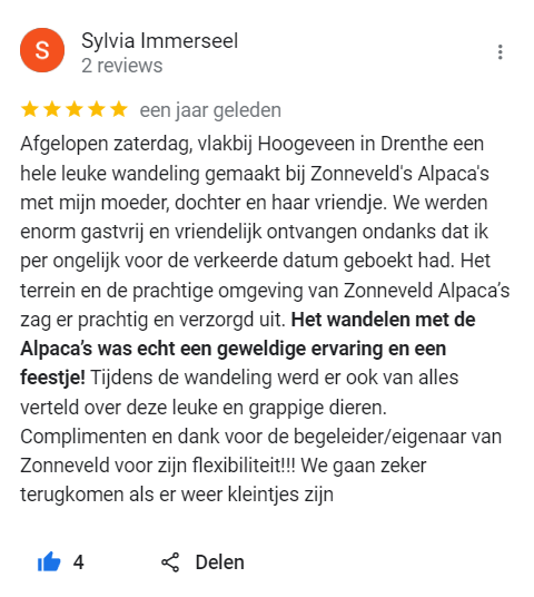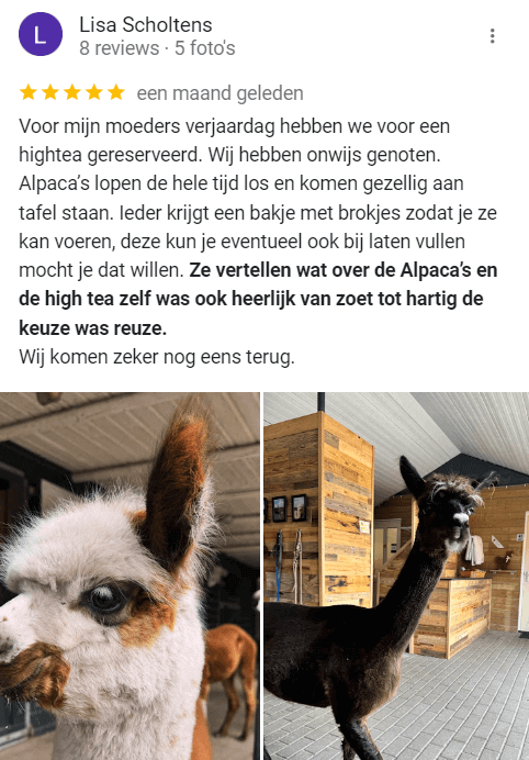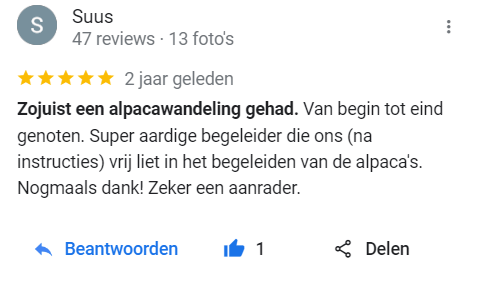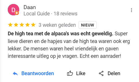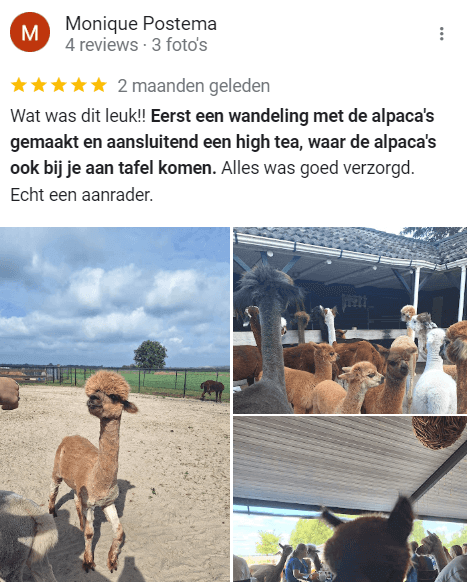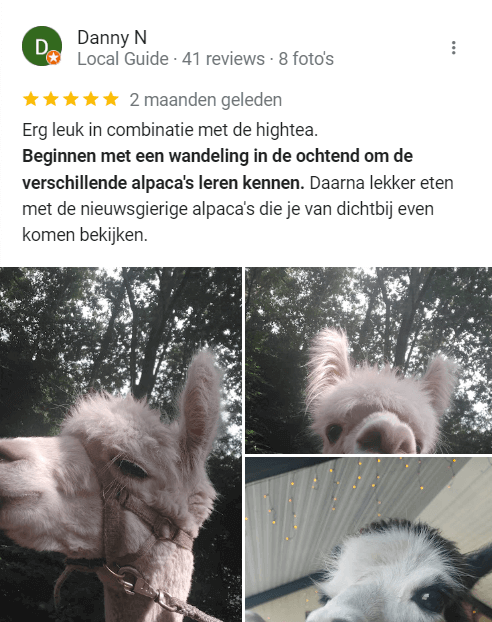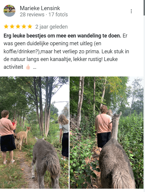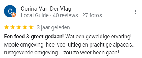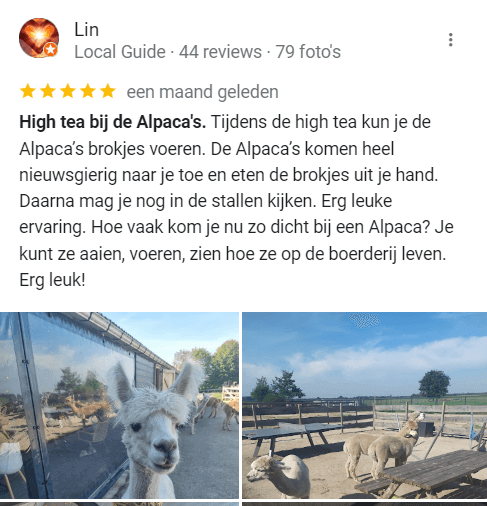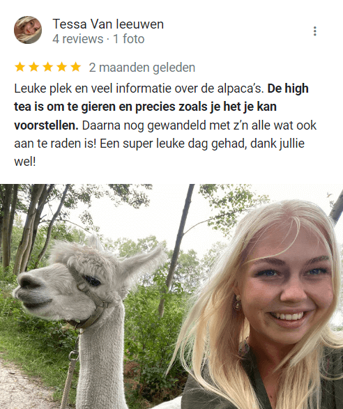 - De alpaca’s komen erg dichtbij. Niet geschikt voor mensen die dit eng vinden