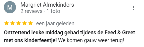 – Feed & Greet –€ 15,50 p.p. – Vrijdag om 15.30 uur